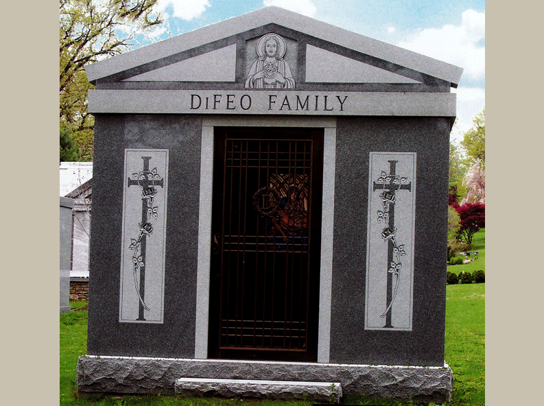 If you are interested in ordering a 6 crypt grey granite mausoleum with gable roof for your family, please consider talking with Vince Dioguardi of Rome Monument at 724-770-0100. Vince will be happy to explain how the process of ordering works, how prices are determined, your design customization options, our mausoleum construction standards and the mausoleum setting and installation details. Please feel free to email Mr. Dioguardi at info@romemonuments.com.